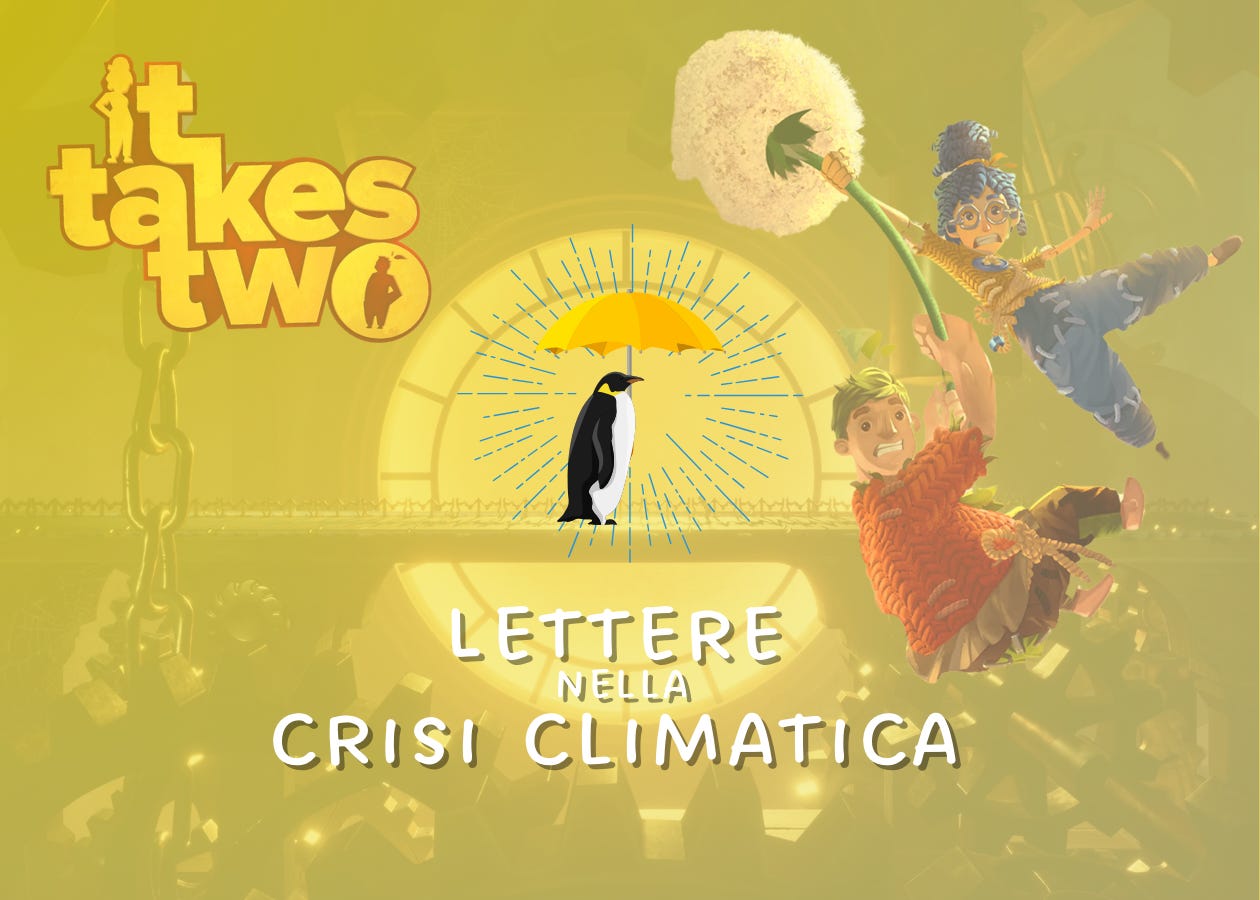 Come amo sempre ripetere nelle mie incursioni sulle Lettere nella crisi climatica: “lo storytelling è l’arte di raccontare e cambiare il mondo”. È il motivo per cui su queste pagine cerco di riversare lettere e parole anche su videogiochi che, come It Takes Two, si stanno affermando come esempi di storytelling e strumenti per esplorare la società del nostro tempo attraverso la “pop filosofia”. Poi, come sempre, ricordati di partecipare all’esplorazione lasciando le tue parole nei commenti.