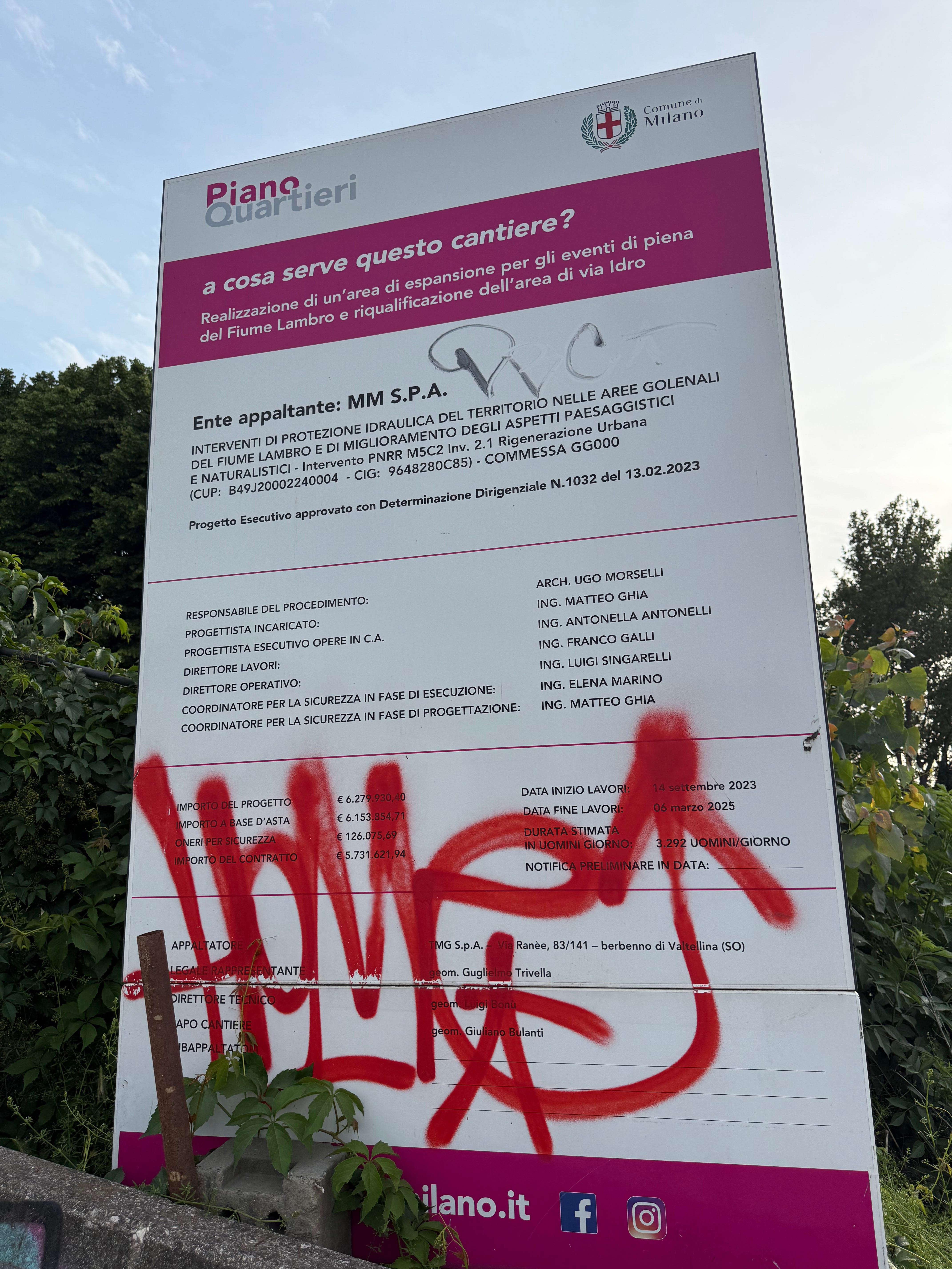Titolo del progetto: Interventi di protezione idraulica del territorio nelle aree golenali del fiume Lambro e di miglioramento degli aspetti paesaggistici e naturalistici (Intervento PNRR M5C2 Inv. 2.1 Rigenerazione Urbana)